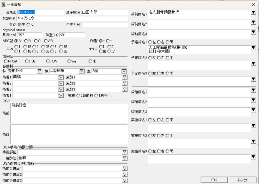毎回手入力ではなく、手術予定表から患者情報を選択したら自動的に患者属性項目が入力されるようにしたい!
