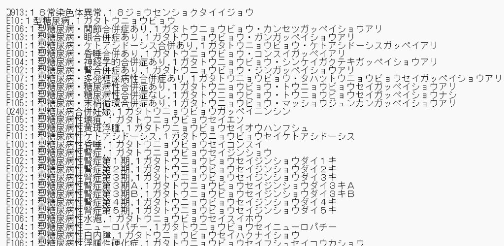 ボックス内に、病名の一部を全角で入力、▼を押します。